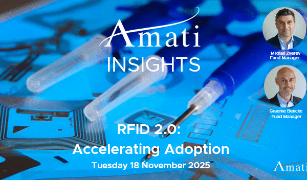 Recent conversations with the industry suggest that RFID and other wireless IoT technologies continue to unlock new transformative applications – from retail to healthcare to everyday consumer life. Join Amati Global Innovation fund managers Mikhail Zverev and Graeme Bencke as they discuss how they are investing to benefit from what’s coming next.